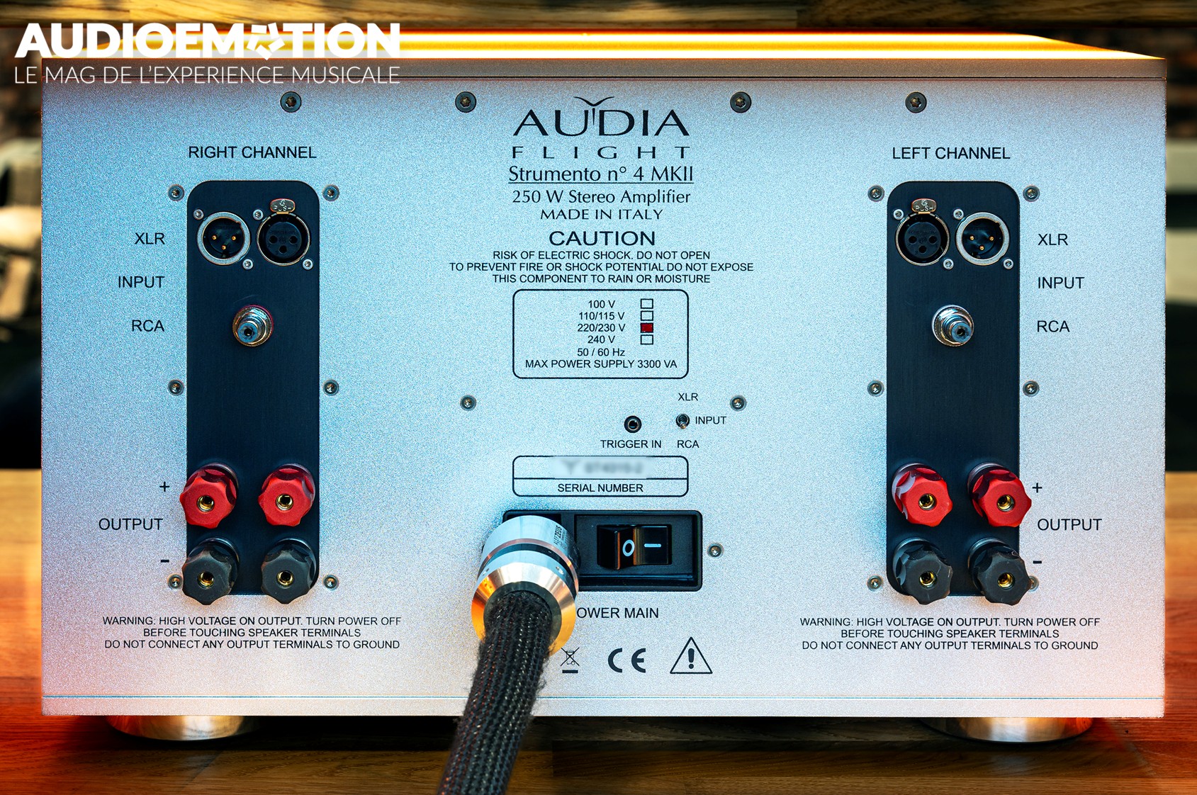 Ce beau bébé de 90 kg délivre sportivement mais sereinement 2 x 200 W sous 8 ohms et le double sous 4 ohms – tel un marathonien parallèlement champion du 100 m – garantissant une totale stabilité c’est-à-dire la capacité à soutenir le fragile signal émotionnel face à la majeure partie des enceintes du marché, y compris les plus retorses dont la complexité technique relève parfois du marécage.