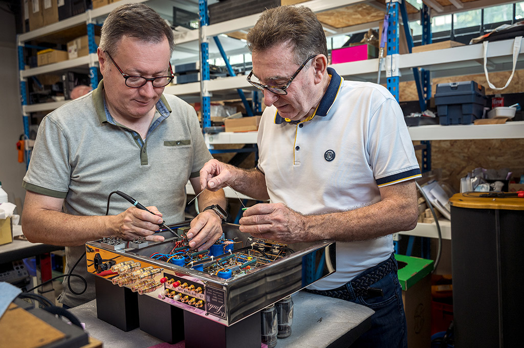 Vous trouverez chez nous les compétences techniques sous tous les aspects de la reproduction musicale : de l’analogique au numérique, des tubes aux transistors, de l’enceinte passive à celle active.